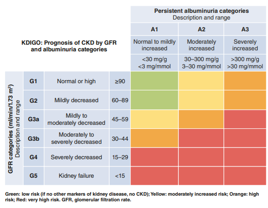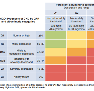 La enfermedad se clasifica en cinco etapas según el grado de funcionamiento renal, medido por la tasa de filtrado glomerular (TFG):